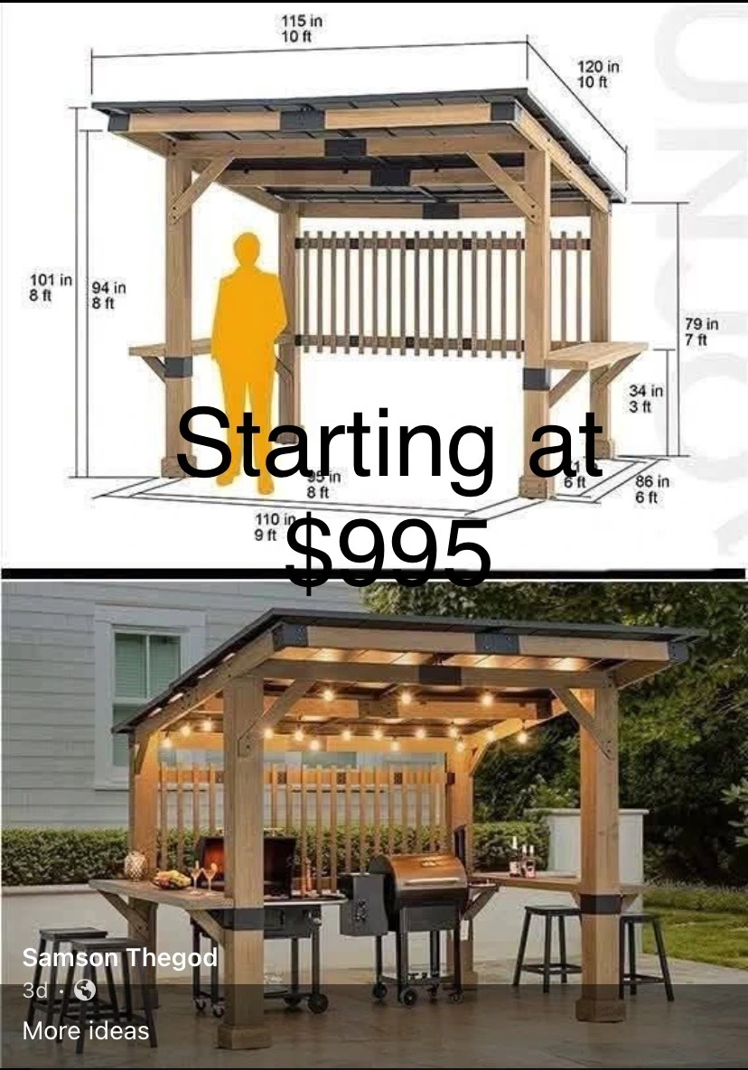 OUTDOOR GAZEBO (STARTING AT $995/CALL FOR PRICES)